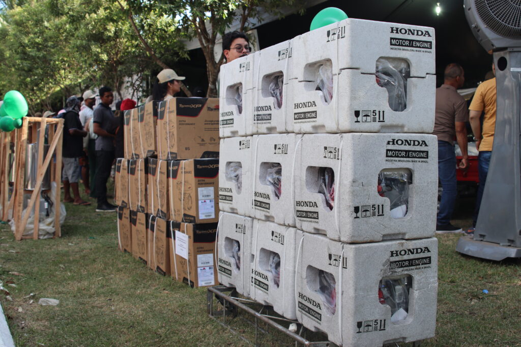 Entre os itens entregues estão despolpadeiras, motores rabeta, caixas d’água, casas de farinha, kits pesca e equipamentos agrícolas, beneficiando diretamente produtores rurais e fortalecendo a agricultura familiar.
